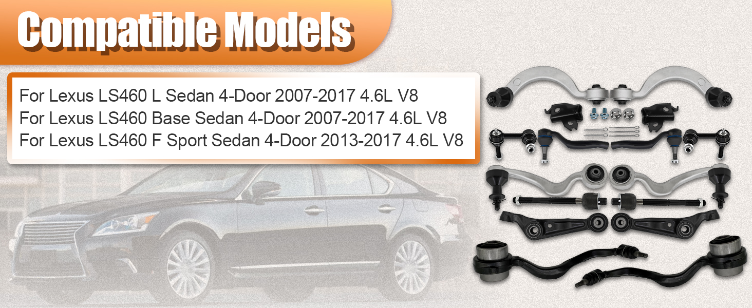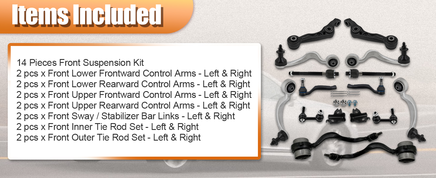 14 PCS Front Upper & Lower Control Arms Kit for Lexus LS460 AWD 2007-2017 with Links & Tie Rod