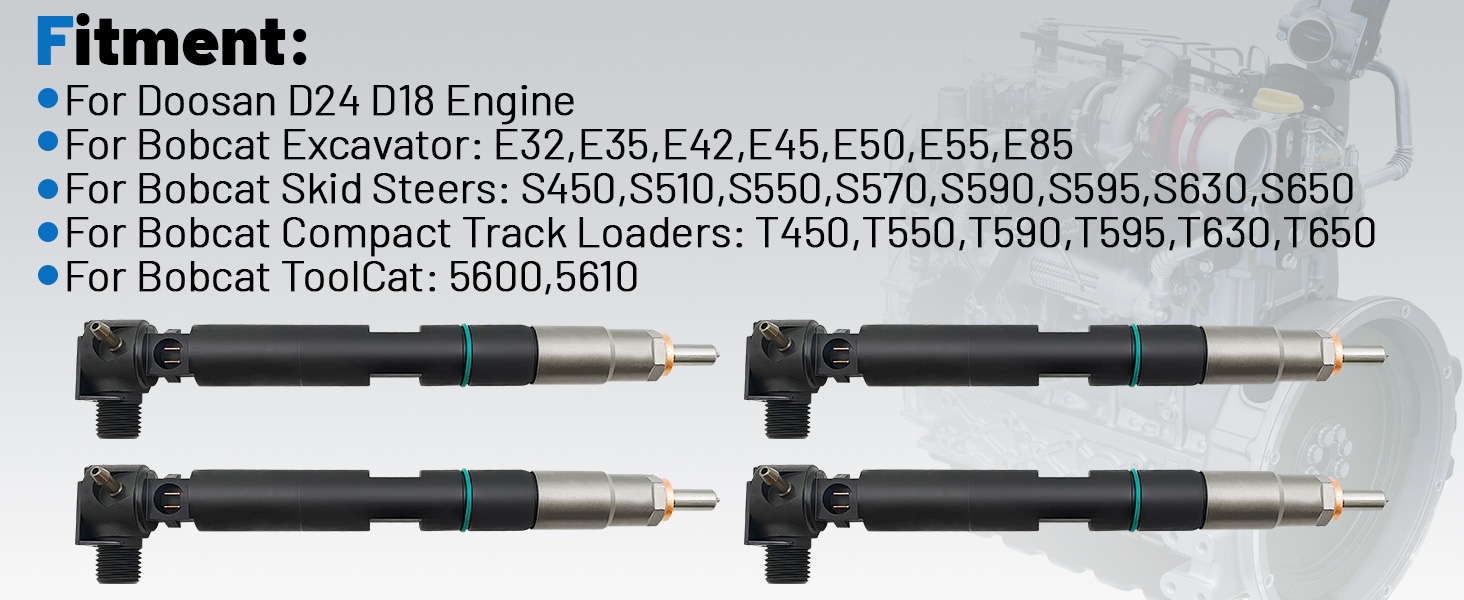 4PCS Fuel Injectors with Seal for Delphi Doosan D24 D18 For Bobcat E32 E35 E42 E45 E50 E55 E85 S450 T450 T550