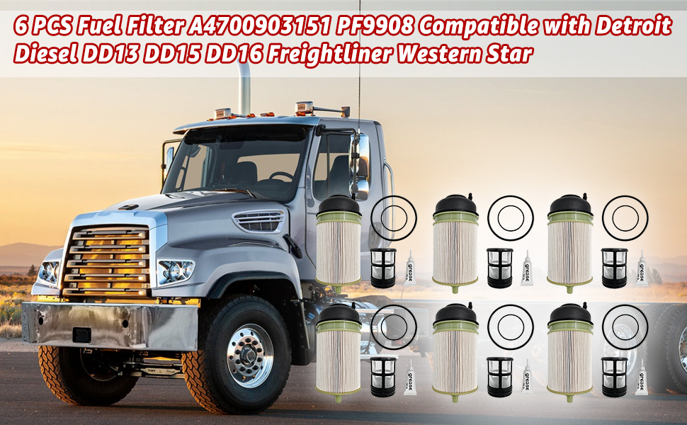 6 PCS Fuel Filter Compatible with Detroit Diesel DD13 DD15 DD16 Freightliner Western Star