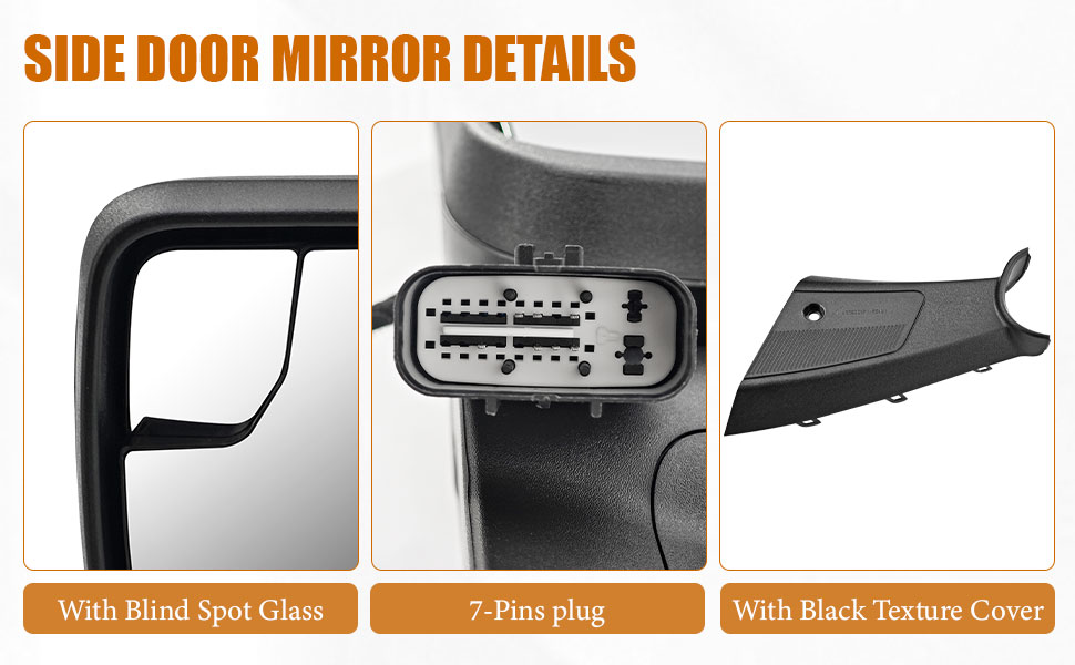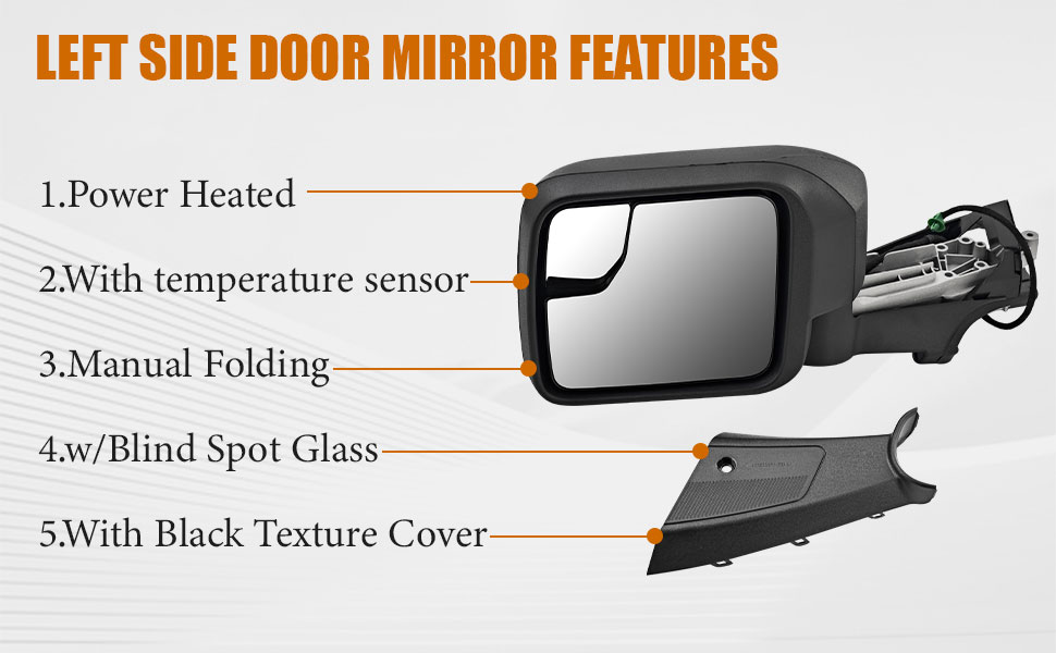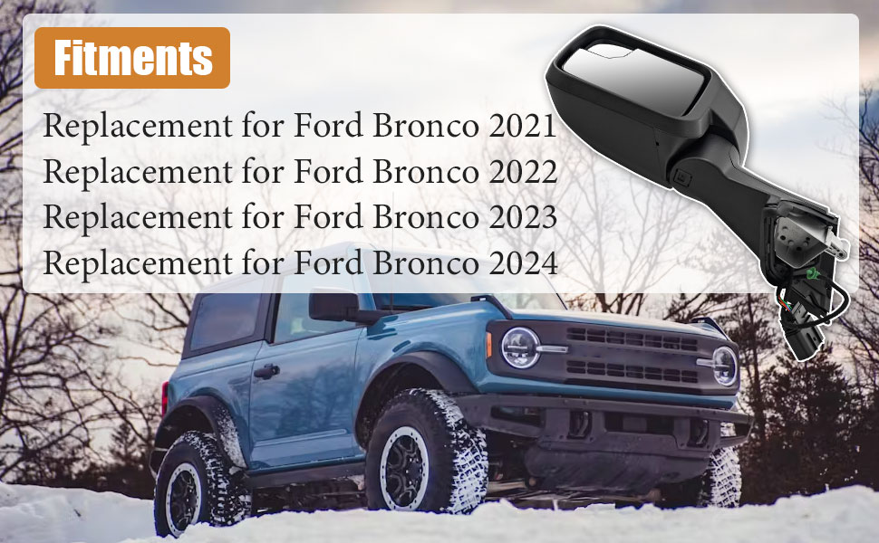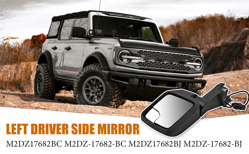 7-Pins Left Driver Side Mirror for Ford Bronco 2021-2024 -Power Heated Manual Folding Blind Spot Glass w/Temp sensor