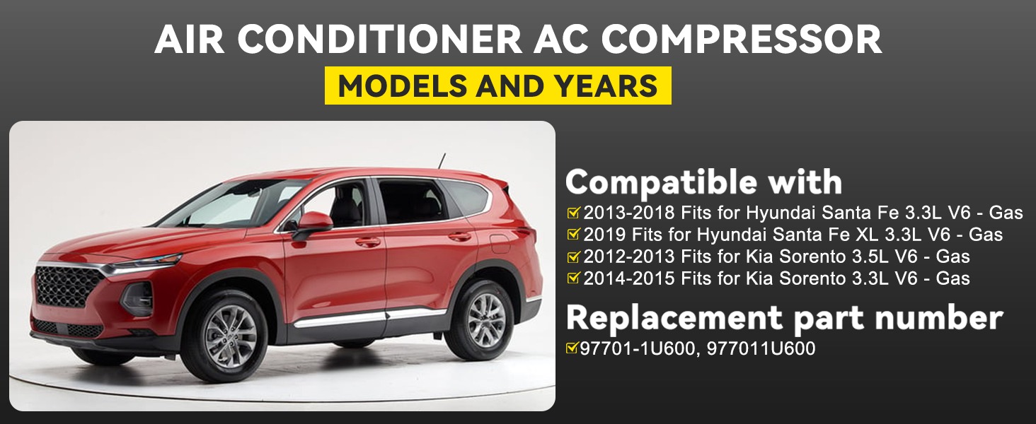 AC Compressor with Clutch Fits Hyundai Santa Fe 2013-2018, Kia Sorento 2012-2015 #977011U650