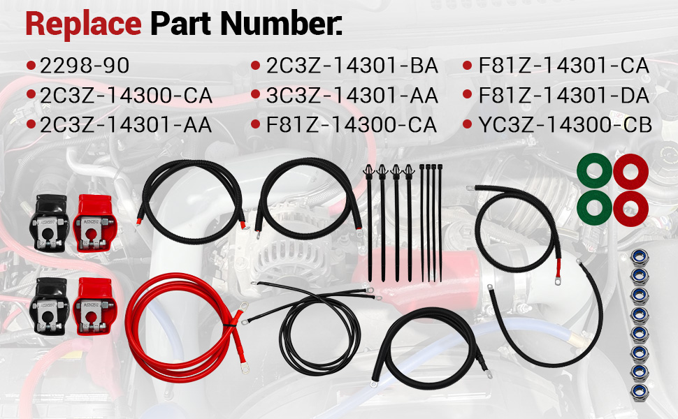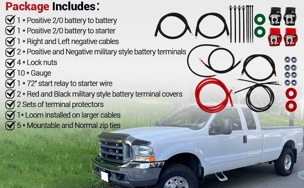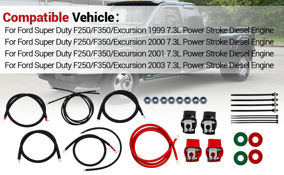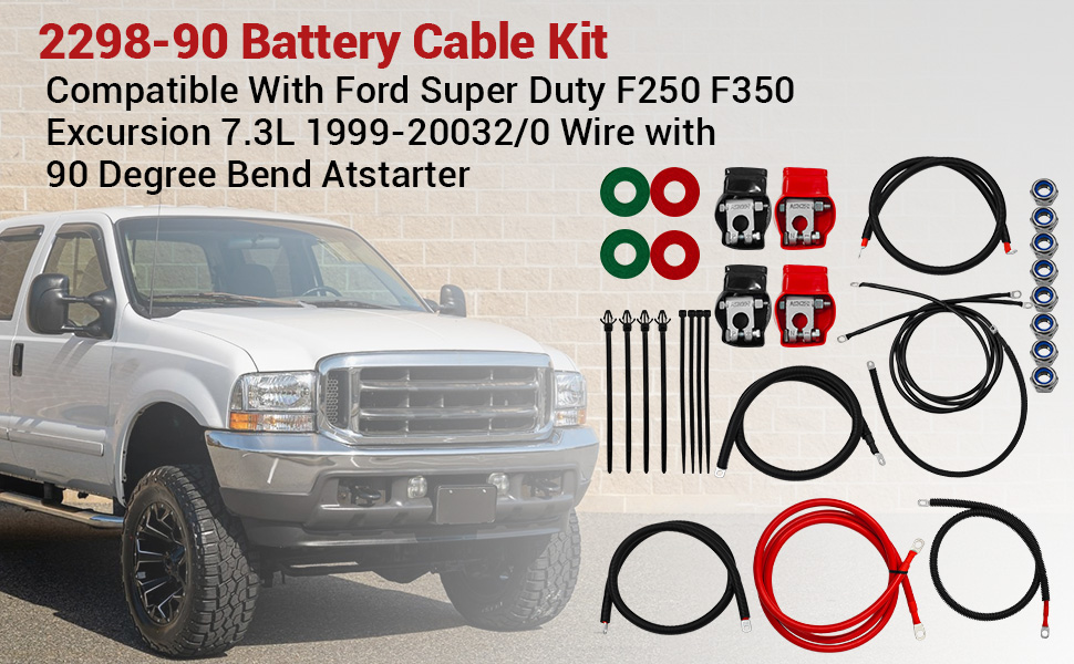 Battery Cable Kit for Ford Super Duty F250 F350 Excursion 1999-2003 7.3L Power Stroke Diesel Engine 2/0 Wire with 90 Degree Bend Atstarter