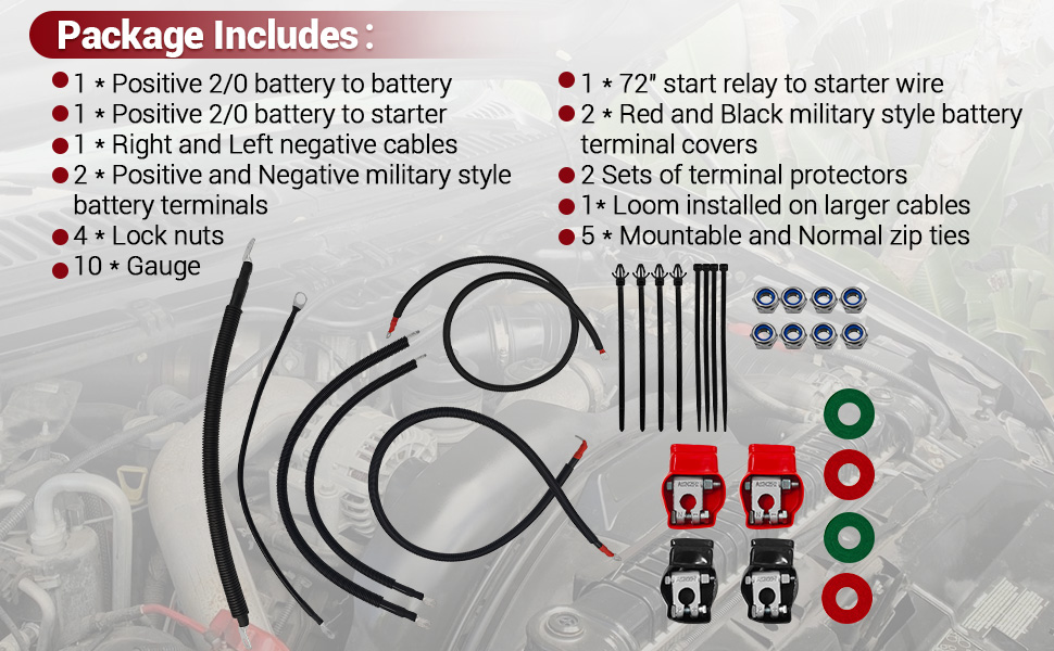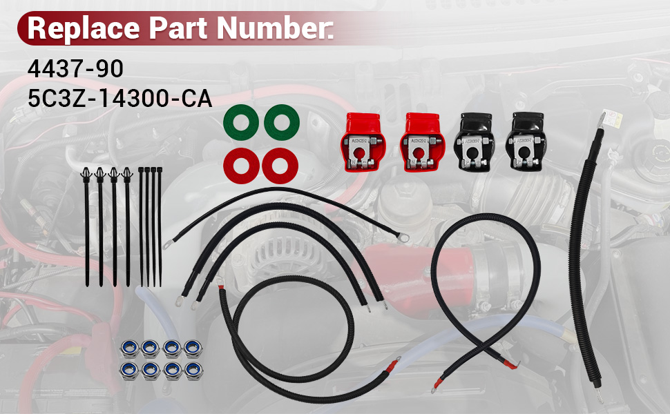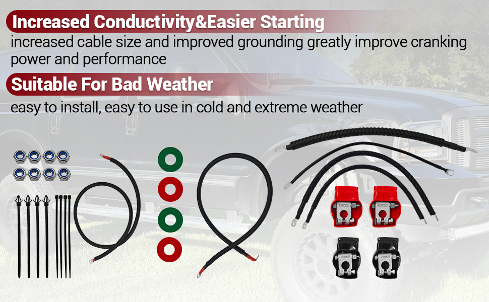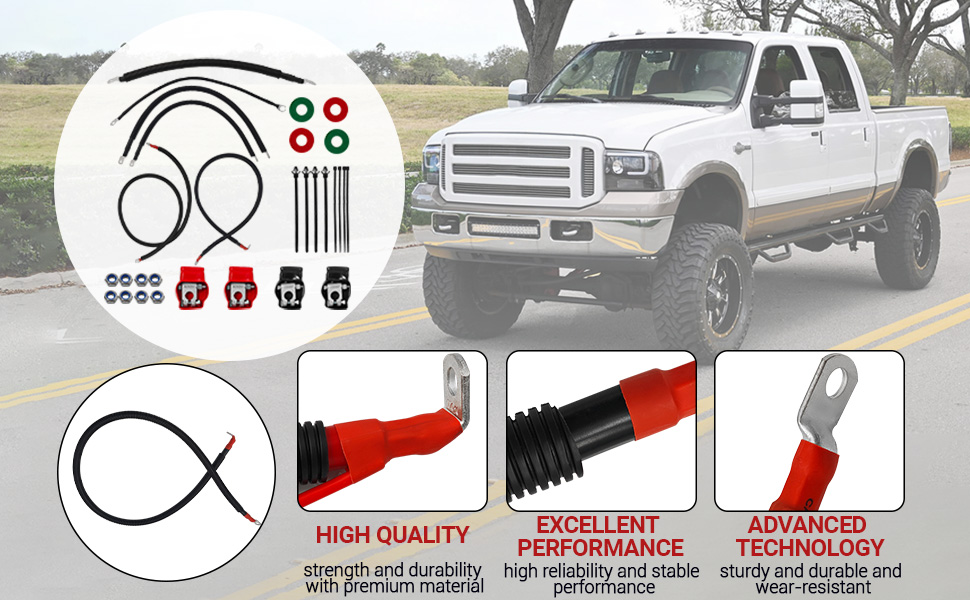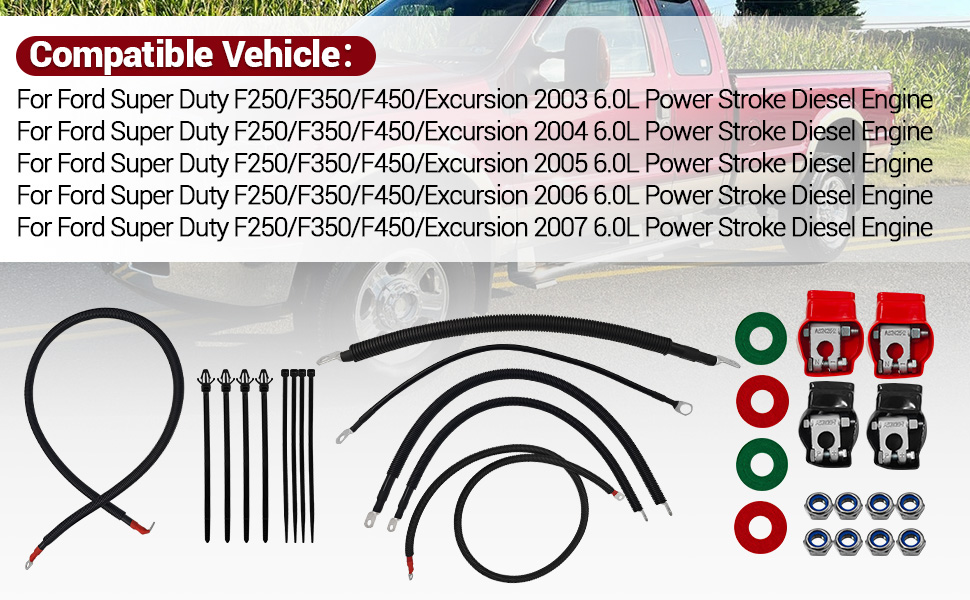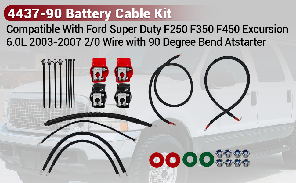 Battery Cable Kit for Ford Super Duty F250 F350 F450 Excursion 2003-2007 6.0L Power Stroke Diesel Engine 2/0 Wire w/90 Degree Bend Atstarter