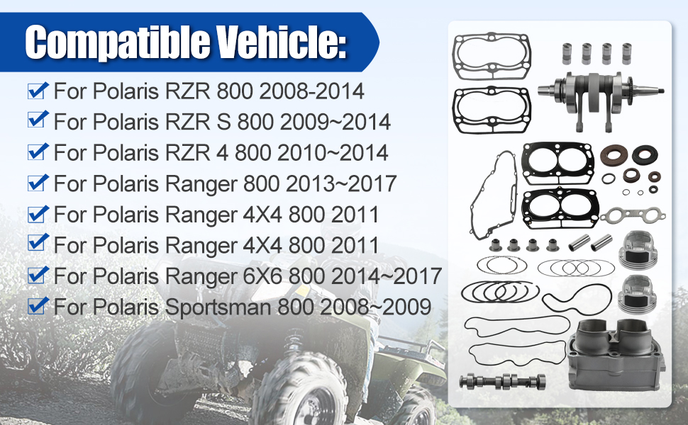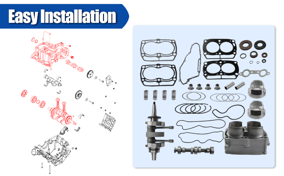 Engine Rebuild Kit Crankshaft Camshaft Cylinder Engine Kit for Polaris 800 RZR 2008-2014; for Ranger 800 2011-2017; for Sportsman 800 2008-2009
