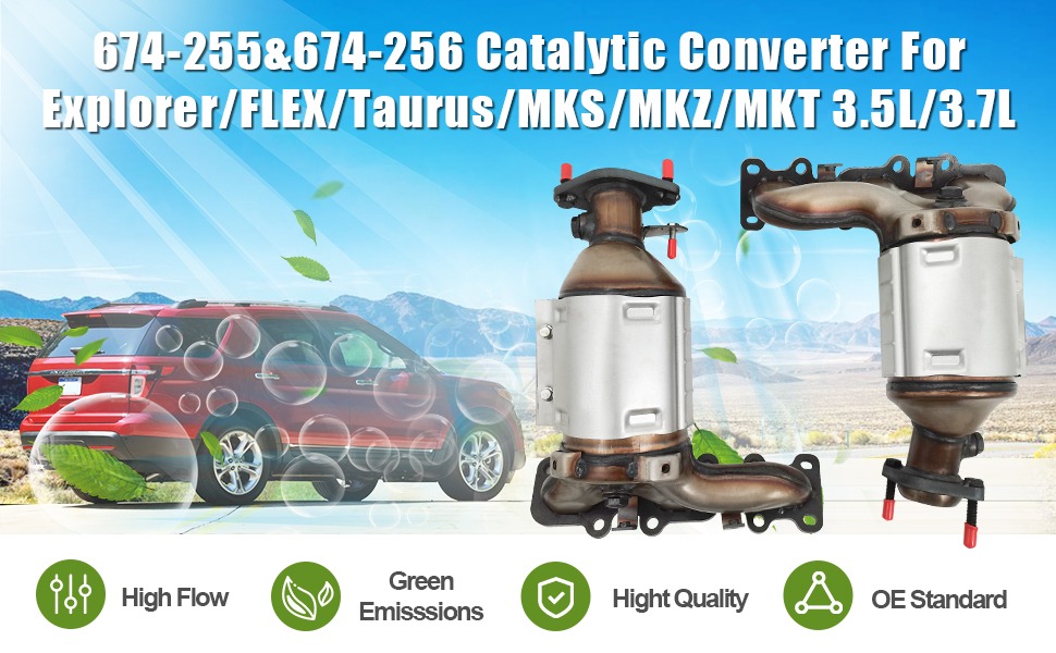 Front Left and Right Catalytic Converter Replacement For 2013-2019 Ford Explorer, Flex, Taurus, MKS, for 2013-2018 Lincoln MKZ, MKT (EPA Compliant)