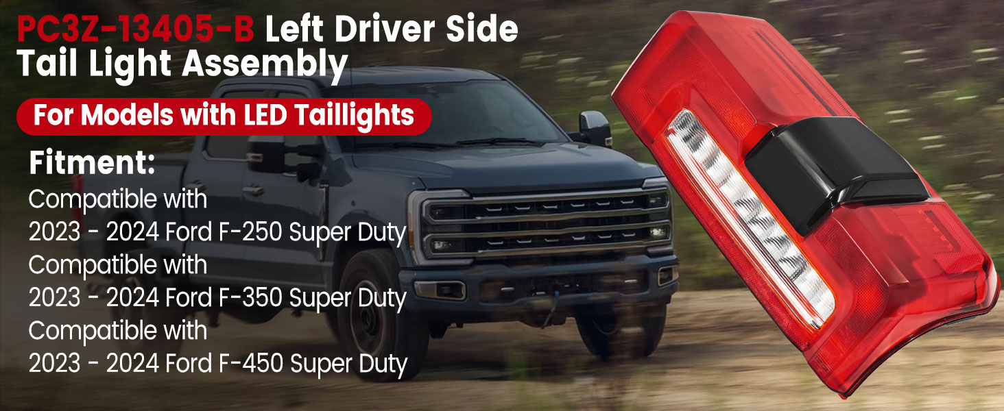 LED Type Tail Light Assembly w/Blind Spot for 2023-2024 Ford F250 F350 Super Duty - Left Driver Side
