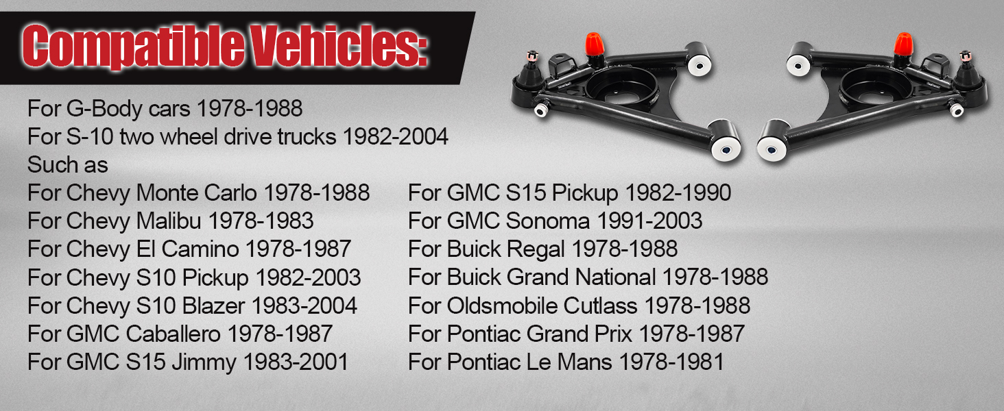 Lower Tubular Control Arms Kit Compatible with GMC G-Body 1978-1988 For S10 2WD 1982-2004